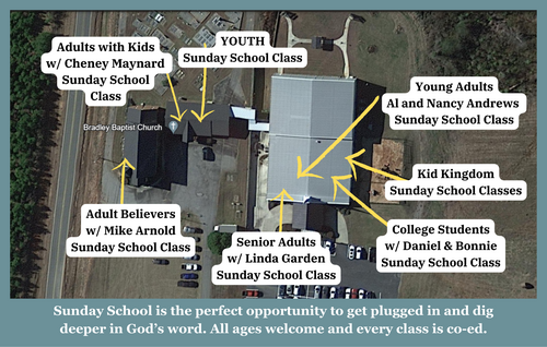 We would like to extend a warm invitation to you and your family to join us in Sunday School here at Bradley Baptist Church, every Sunday at 10 AM